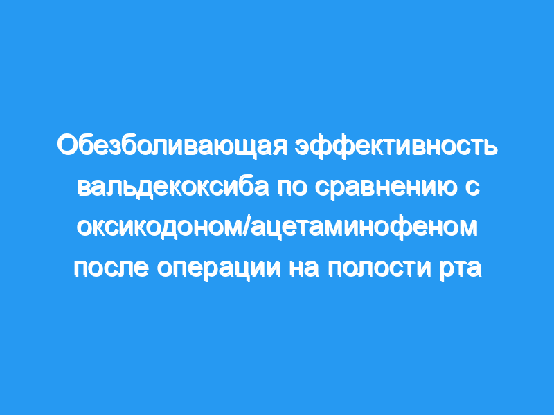 Перорально вводимый вальдекоксиб обладает таким же быстрым действием и эффективностью, как оксикодон/ацетаминофен, и обладает более длительным обезболивающим эффектом у пациентов после операций на полости рта. Профиль переносимости вальдекоксиба превосходит профиль переносимости оксикодона/ацетаминофена. Клинические последствия: Нынешний стандарт лечения для облегчения острой боли после операций на полости рта в основном основан на обычных нестероидных противовоспалительных препаратах или комбинированных препаратах с опиоидами и анальгетиками. Представленные здесь исследования показывают, что специфический ингибитор ЦОГ-2 вальдекоксиб предлагает эффективную и безопасную альтернативу другим анальгетикам, используемым для лечения боли после операций на полости рта.