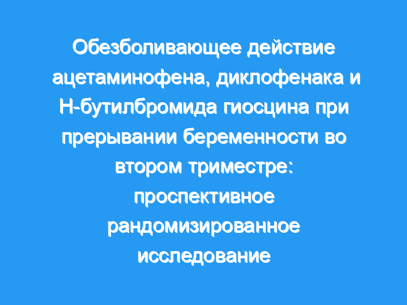 Целью этого проспективного рандомизированного исследования было сравнение обезболивающих эффектов ацетаминофена, диклофенака и гиосцин-Н-бутилбромида (HnBB) в случаях прерывания беременности во втором триместре.