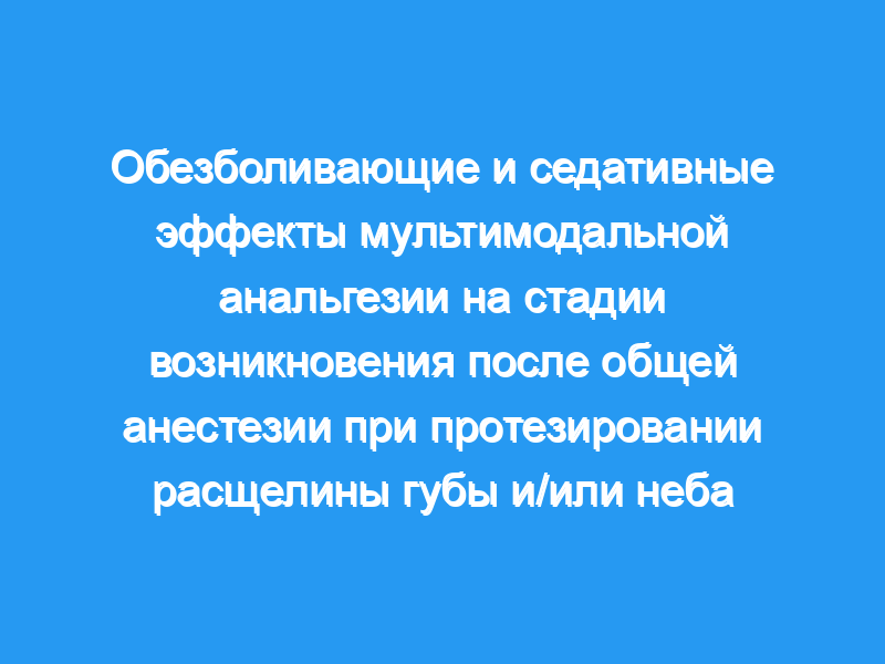 Мультимодальный режим обезболивания, включающий инфильтрацию местного анестетика в месте операции и ректальный парацетамол и внутривенное введение фентанила, обеспечивает достаточную анальгезию, сводит к минимуму частота возбуждения после общей анестезии при операциях на расщелине губы и/или неба у детей, увеличивает скорость направления пациентов в PACU и обеспечивает безопасность пациентов после анестезии.