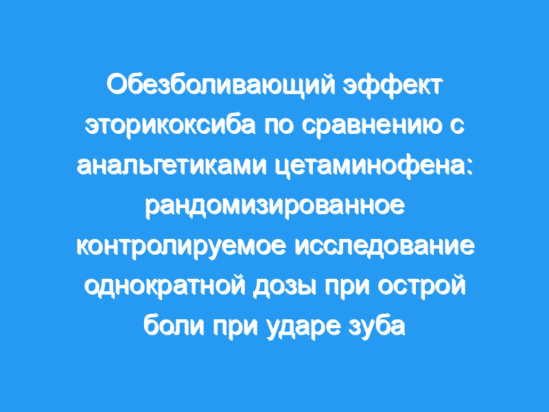 302 пациента (средний возраст 23 года, 63% женщин, 63 % белых) были рандомизированы на эторикоксиб 120 мг, оксикодон/ацетаминофен 10 мг/650 мг, кодеин/ацетаминофен 60 мг/600 мг и плацебо (2:2:1:1). Эторикоксиб продемонстрировал значительно большую общую анальгетическую эффективность (TOPAR6) (13,2 ед.) по сравнению с оксикодоном/ацетаминофеном (10,2 ед.) и кодеином/ацетаминофеном (6,0 ед.), p <, 0,001 для всех. Все активные методы лечения превосходили плацебо. Медиана времени до начала лечения была значительно (p <, 0,001) короче для оксикодона/ацетаминофена (20 мин) и численно, но не значительно короче (p = 0,259) для кодеина/ацетаминофена (26 мин) по сравнению с эторикоксибом (40 мин). Эторикоксиб (24 ч) оказывал значительно более длительный анальгетический эффект, чем оксикодон/ацетаминофен (5,3 ч), кодеин/ацетаминофен (2,7 ч) и плацебо (1,7 ч) (p <, 0,001 для всех). Пациенты с эторикоксибом испытывали меньше клинических побочных эффектов, чем пациенты, принимавшие оксикодон/ацетаминофен и кодеин/ацетаминофен, в частности, значительно (p <, 0,05) меньше эпизодов тошноты.