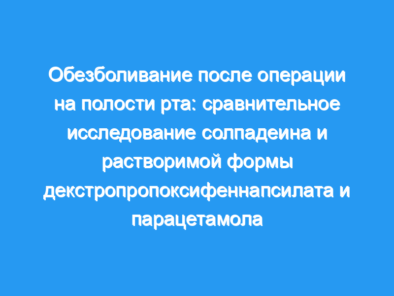 Представлено исследование, целью которого было сравнить солпадеин (парацетамол 500 мг, фосфат кодеина 8 мг и кофеин 30 мг) и растворимый ДНП (декстропропоксифеннапсилат, эквивалентный 32,5 мг гидрохлорида и 325 мг парацетамола) в контроле боли после удаления зубов мудрости.