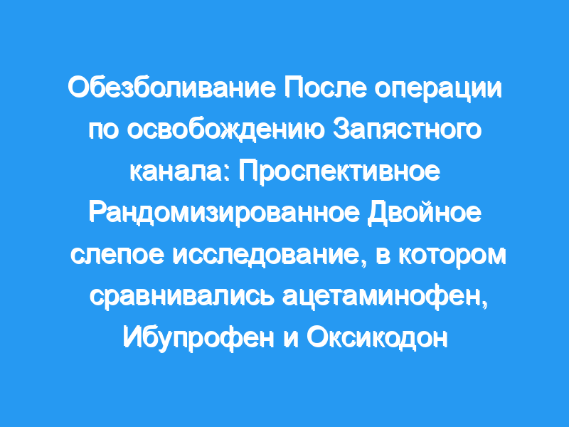 Распределение обезболивающих таблеток между 105 пациентами, завершившими исследование, составило 37 OXY, 34 IBU и 34 ACE. В группе эндоскопического лечения среднее общее количество таблеток, потребляемых со дня операции до 5-го послеоперационного дня для OXY, IBU и ACE, составило 2,9, 4,2 и 2,7 соответственно. Средние худшие ежедневные показатели боли за все дни для групп OXY, IBU и ACE составили 2,8, 2,5 и 2,8 соответственно. В группе с открытым CTR среднее общее количество таблеток, потребляемых со дня операции до 5-го послеоперационного дня для OXY, IBU и ACE, составило 3,7, 5,1 и 4,2 соответственно. Средние худшие ежедневные показатели боли за все дни для групп OXY, IBU и ACE составили 3,4, 2,5 и 2,3 соответственно. Пациенты группы OXY сообщили о четырех из 5 нежелательных явлений, но все они были незначительными, без повторных операций или повторных госпитализаций.