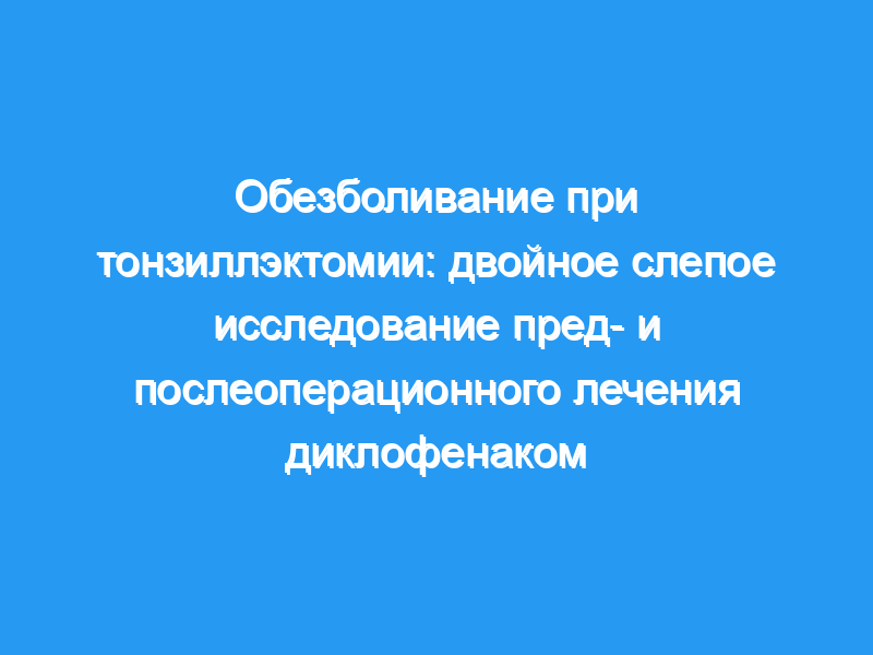 Эффективность и переносимость суппозиториев диклофенака, вводимых до и/или после операции, были исследованы в рандомизированном двойном слепом исследовании на 99 пациентах, перенесших тонзиллэктомию.