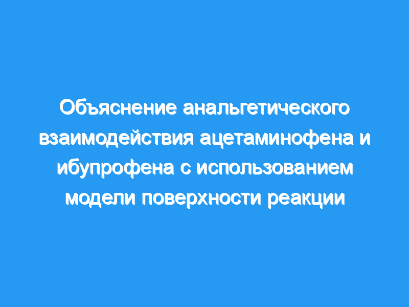 Были получены объединенные данные по взрослым, получавшим восемь однократных и многократных комбинаций доз, а также плацебо. Диапазон доз ибупрофена составлял 100-400 мг, а диапазон доз ацетаминофена — 500-1000 мг. Оценки фармакодинамических параметров, выраженные с использованием уравнения Хилла, составили максимальный эффект (E(MAX)) 4,06 (95% ДИ: 3,24, 5,51), концентрация ацетаминофена, связанная с 50% максимального эффекта препарата (EC(50,ACET)) 11,9 (95% ДИ: 6,0, 49,5) мг·л(-1) , ЕС ибупрофена(50) (ЕС(50,IBU) ) 5,07 (95% ДИ: 3,50, 8,26) мг·л(-1) и коэффициент Хилла 2 (95% ДИ: 1,3, 2,8). Член взаимодействия был зафиксирован на нуле (аддитивное взаимодействие). Моделирование показало, что добавление ацетаминофена к ибупрофену при дозах менее 5 мг·кг(-1) было эффективным, ацетаминофен оказывал минимальный эффект при введении с ибупрофеном в дозах более 5 мг·кг(-1) в ближайшем послеоперационном периоде. Более стойкий обезболивающий эффект был отмечен через 4-8 ч после комбинированного приема.