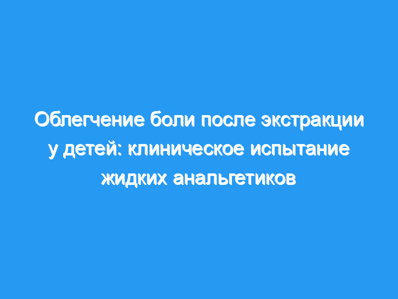 Наша цель состояла в том, чтобы оценить относительную эффективность четырех жидких анальгетиков у детей в возрасте от пяти до двенадцати лет после удаления зуба.