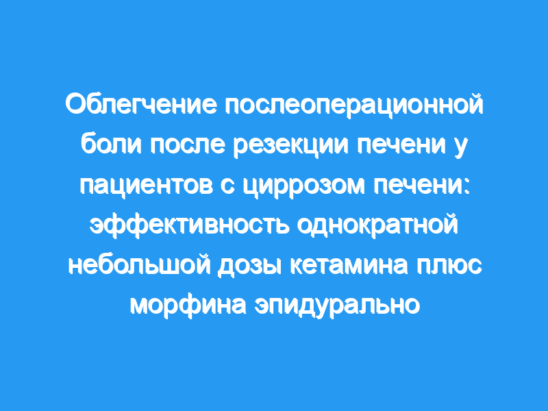 У пациентов с циррозом печени, перенесших операцию на печени, послеоперационная анальгезия остается сложной задачей.