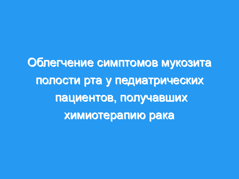 В заключение, хлоргексидин может быть полезен для облегчения симптомов мукозита у детей. в химиотерапии.