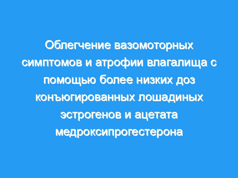 Оценить эффективность более низких доз конъюгированных лошадиных эстрогенов (CEE) плюс медроксипрогестерона ацетата (MPA) для облегчения вазомоторных симптомов и атрофии влагалища. Дизайн: Рандомизированное двойное слепое плацебо-контролируемое исследование (исследование «Женское здоровье, остеопороз, прогестин, эстроген»).
