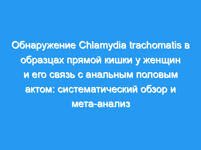 Chlamydia trachomatis является наиболее часто диагностируемым бактериальным ИППП. Отсутствие данных о распространенности и факторах риска ректального хламидиоза у женщин имеет последствия для тестирования и лечения, поскольку азитромицин (средство первой линии для лечения урогенитального хламидиоза) может быть менее эффективным при ректальном хламидиозе. Мы провели систематический обзор исследований, посвященных женщинам в странах с высоким уровнем дохода, чтобы оценить распространенность ректального хламидиоза, параллелизм с урогенитальным хламидиозом и ассоциации с сообщениями об анальном половом акте (ИИ). Дизайн: Систематический обзор и четыре мета-анализа, проведенных с использованием моделирования случайных эффектов. Источники данных: Medline, Embase, Совокупный индекс литературы по сестринскому делу и смежной медицинской литературе, PsycINFO и База данных Cochrane были найдены статьи, опубликованные в период с января 1997 года по октябрь 2017 года. Критерии отбора: Были включены исследования, в которых сообщалось о положительном отношении ректального хламидиоза у гетеросексуальных женщин в возрасте ≥15 лет в странах с высоким уровнем дохода. В исследованиях должны были использоваться тесты на амплификацию нуклеиновых кислот и сообщаться как об общем количестве женщин, проверенных на ректальный хламидиоз, так и о количестве выявленных ректальных хламидийных инфекций. Тезисы докладов конференций, отчеты о случаях и исследования с самооценками были исключены. Извлеченные данные включали настройки, результаты тестирования на ректальный и урогенитальный хламидиоз, историю ИИ и демографические данные.