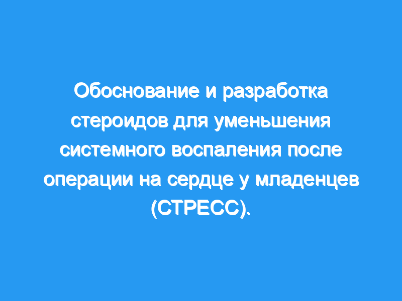STRESS станет одним из крупнейших испытаний, когда-либо проводившихся у детей с пороками сердца, и даст ответ на давний вопрос, связанный с безопасностью и эффективностью периоперационных стероидов у младенцев, перенесших операцию на сердце с CPB. Прагматичный дизайн «исследования в рамках реестра» может обеспечить механизм для проведения недорогих, высокоэффективных исследований в ранее недостаточно изученной популяции пациентов.
