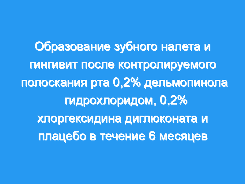 Результаты этого клинического исследования показывают, что контролируемое полоскание 0,2%-ным раствором дельмопинола гидрохлорида или 0,2%-ным раствором хлоргексидина диглюконата два раза в день в течение 60 секунд в дополнение к обычным процедурам механической гигиены полости рта приводило к меньшему образованию зубного налета и гингивиту, чем полоскание плацебо. Хотя хлоргексидин был более эффективен, чем дельмопинол, в отношении образования зубного налета и гингивита, пациенты считали его менее переносимым.