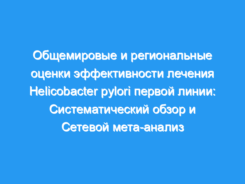 Искоренение инфекции Helicobacter pylori является сложной задачей. Мы стремились определить оптимальные методы лечения H. pylori первой линии на глобальном и региональном уровнях.