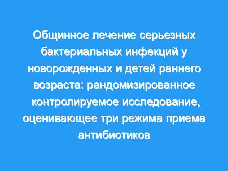 Сепсис в неонатальном периоде является основной причиной детской смертности в странах с низким уровнем дохода. Для лечения рекомендуется госпитализация и парентеральная терапия пенициллином/ампициллином и гентамицином. Однако многие семьи не имеют доступа к стационарному лечению, и большинство новорожденных, родившихся на дому, у которых развивается сепсис, умирают, не получая антибактериальной терапии. Подходящая терапия на базе сообщества в таких ситуациях не определена. Мы сравнили частоту неудач 3-х клинических схем приема антибиотиков у младенцев в возрасте от 0 до 59 дней с возможной серьезной бактериальной инфекцией, чьи семьи отказались от госпитализации в общинах Карачи с высоким уровнем неонатальной смертности >, 45/1000 живорождений.
