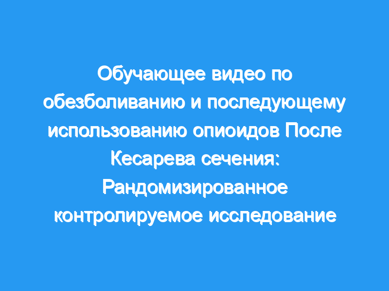 Среди женщин, перенесших кесарево сечение, просмотр обучающего видео по обезболиванию снизил употребление опиоидов после выписки. Регистрация клинического испытания: ClinicalTrials.gov , NCT03959969.
