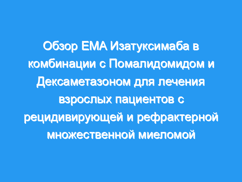 Цель этой статьи — обобщить научный обзор применения, приведший к одобрению регулирующих органов в ЕС. ПОСЛЕДСТВИЯ ДЛЯ ПРАКТИКИ: Изатуксимаб был одобрен в Европейском Союзе в комбинации с помалидомидом и дексаметазоном для лечения пациентов с множественной миеломой, которые уже получали терапию, но болезнь которых не поддалась лечению или рецидивировала после войны.
