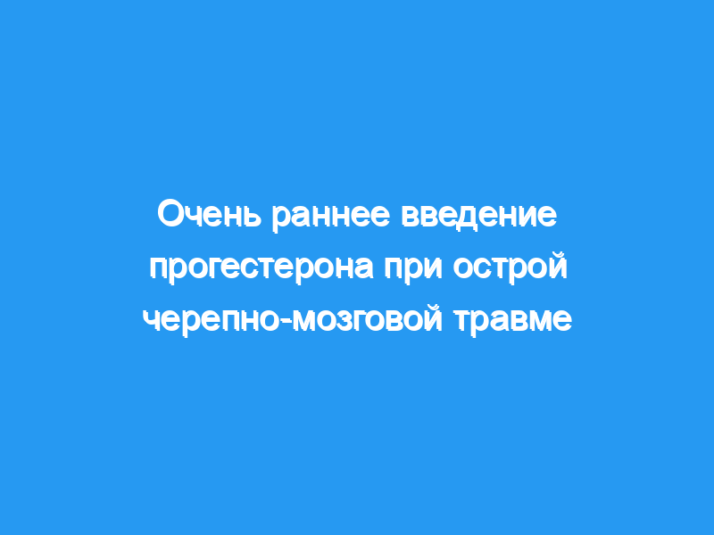 Черепно-мозговая травма (ЧМТ) является основной причиной смертности и инвалидности во всем мире. Было показано, что прогестерон улучшает неврологический исход в нескольких экспериментальных моделях и двух исследованиях на ранней стадии с участием пациентов с ЧМТ.