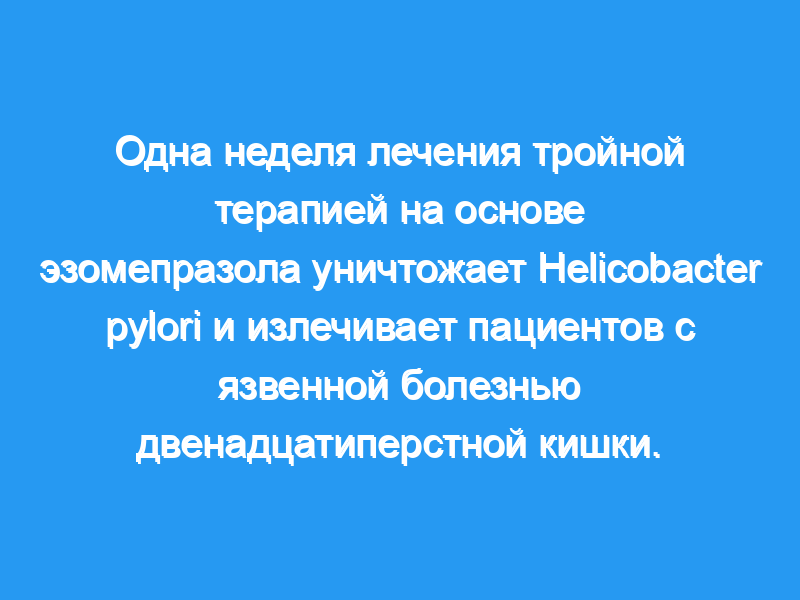 1-недельный режим тройной терапии на основе эзомепразола достаточен для излечения ДУ и эрадикации H. pylori у пациентов с заболеванием ДУ.
