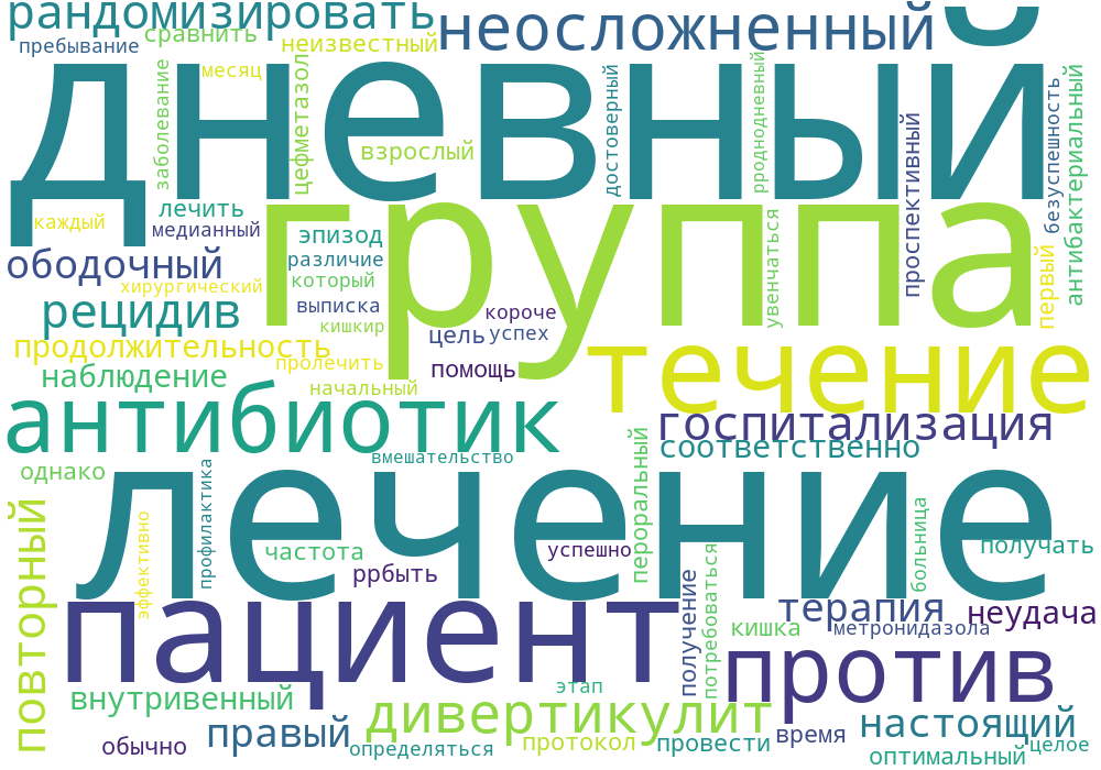 Было проведено проспективное рандомизированное исследование у взрослых с неосложненным дивертикулитом в первом эпизоде с июля 2011 по июнь 2014 года. Пациенты были рандомизированы для получения внутривенных антибиотиков в течение 1 дня (1-дневная группа) или внутривенных и пероральных антибиотиков в течение 4 дней (4-дневная группа). Все пациенты получали цефметазол и метронидазол. Неудача лечения определялась как повторная госпитализация в течение 30 дней и рецидив заболевания в течение периода наблюдения.