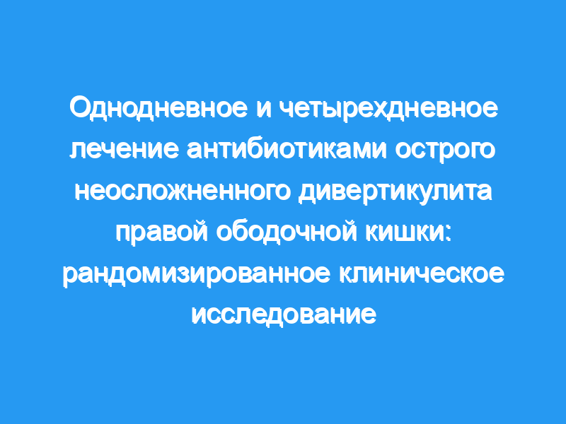 В настоящее время неосложненный дивертикулит правой ободочной кишки обычно лечат с помощью антибактериальной терапии. Однако оптимальная продолжительность лечения неизвестна. Целью настоящего исследования было сравнить частоту неудач лечения между 1- и 4-дневными протоколами лечения антибиотиками.