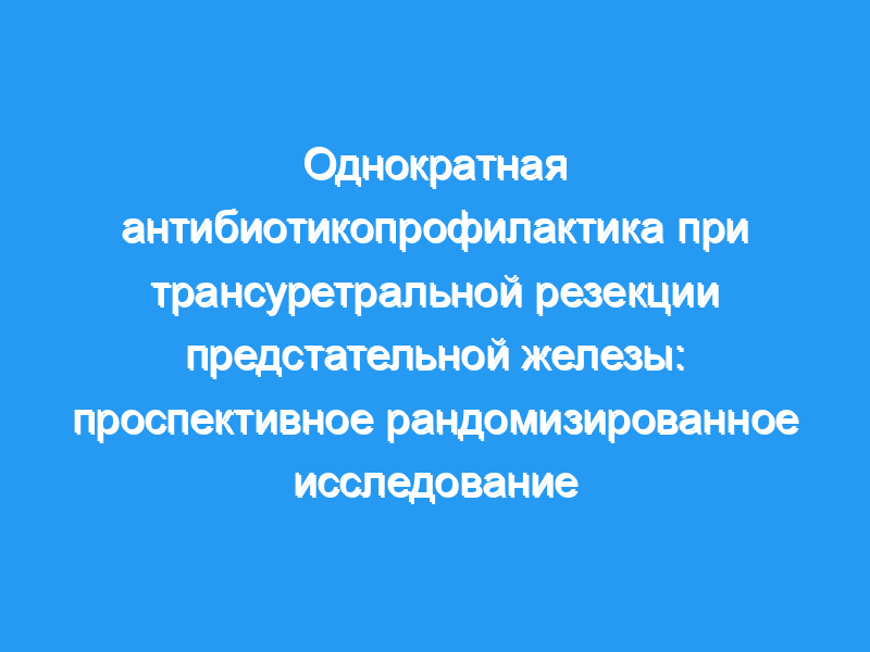 Оценить эффективность однократной антибиотикопрофилактики при трансуретральной резекции предстательной железы (ТУРП). Пациенты и методы: В общей сложности 139 пациентов были включены в проспективное рандомизированное исследование, в котором сравнивалась однократная антибиотикопрофилактика с отсутствием антибиотиков перед операцией. Двенадцать пациентов были исключены, поскольку у них была значительная бактериурия до операции (определяемая как >, or = 10(5) бактерий/мл). Из оставшихся 127 пациентов 62 были отнесены к группе с однократной дозой (А) и 65 — к группе без антибиотиков (В). Все 62 пациента в группе А получали 1 г цефтриаксона внутривенно за 1-2 ч до операции с премедикацией анестезии, 65 пациентов в группе В не получали ни одного. Посевы мочи собирали после операции после удаления катетера и снова через 4 недели после госпитализации.