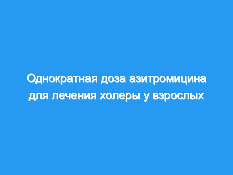 Однократная доза азитромицина эффективна при лечении тяжелой формы холеры у детей, но его эффективность у взрослых не оценивалась.