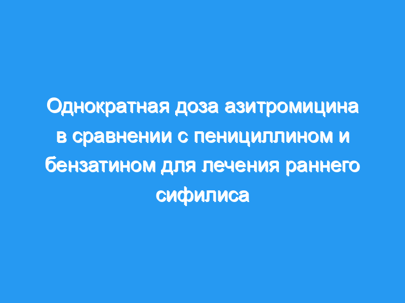 В общей сложности 328 человек, 25 с первичным и 303 с высоким титром (титр по крайней мере 1:8 по тесту быстрого плазминореагина [RPR]) латентного сифилиса, были отобраны путем скрининга групп высокого риска в Мбее, Танзания, и случайным образом назначено принимать 2 г азитромицина перорально (163 субъекта) или 2,4 млн единиц пенициллина и бензатина внутримышечно (165 субъектов). Первичным результатом была эффективность лечения, при этом излечение определялось серологически (снижение титра RPR по крайней мере на два разведения к девяти месяцам после лечения), а при первичном сифилисе — по эпителизации язв в течение одной или двух недель.