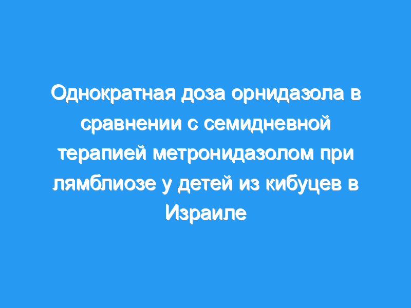 Эффективность однократной дозы орнидазола по сравнению с семидневным приемом метронидазола при лечении лямблиоза была проверена в рандомизированном исследовании с участием 75 детей из кибуцев в Израиле.
