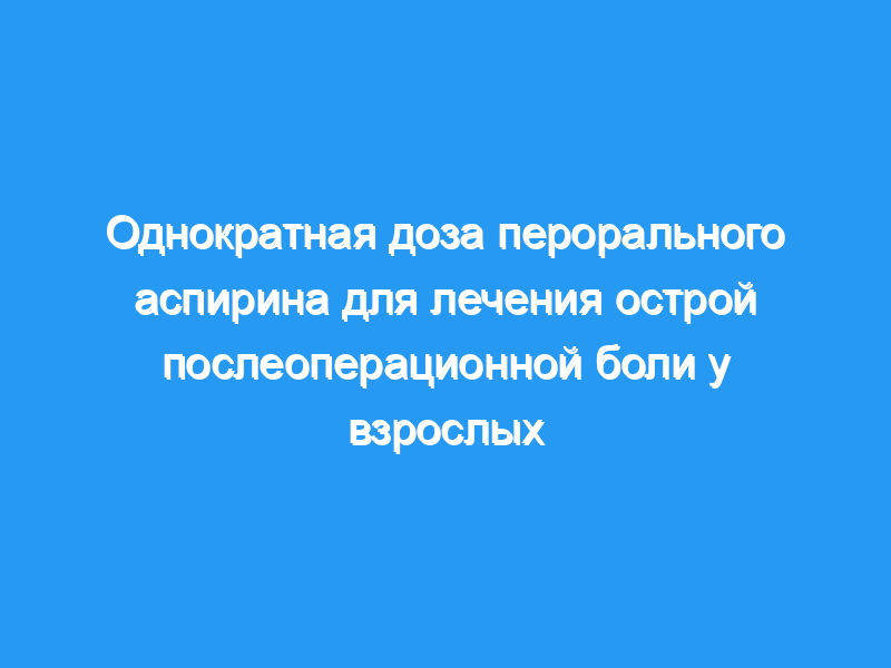 Оценить обезболивающую эффективность и связанные с ней побочные эффекты однократной дозы перорального аспирина при острой послеоперационной боли. Методы поиска: Для более раннего обзора мы определили рандомизированные исследования с помощью поиска CENTRAL (Библиотека Кокрейна) (1998, выпуск 1), MEDLINE (с 1966 по март 1998), EMBASE (с 1980 по январь 1998) и Oxford Pain Relief Database (с 1950 по 1994). Мы обновили поисковые запросы CENTRAL, MEDLINE и EMBASE до января 2012 года. Критерии отбора: Однократная пероральная доза, рандомизированные, двойные слепые, плацебо-контролируемые исследования аспирина для облегчения умеренной и тяжелой послеоперационной боли у взрослых. Сбор и анализ данных: Мы оценили исследования на предмет методологического качества, и два автора обзора извлекли данные независимо друг от друга. Мы использовали суммированное общее обезболивание (TOTPAR) за четыре-шесть часов, чтобы подсчитать количество участников, достигших по крайней мере 50%-ного облегчения боли. Мы использовали эти полученные результаты для расчета с 95% доверительными интервалами относительной пользы по сравнению с плацебо и количества, необходимого для лечения (NNT), чтобы один участник испытал по крайней мере 50%-ное облегчение боли в течение четырех-шести часов. Мы искали количество участников, принимавших спасательные лекарства в течение определенных периодов времени, и время до использования спасательных лекарств в качестве дополнительных показателей эффективности. Мы собирали информацию о нежелательных явлениях и выводах средств.