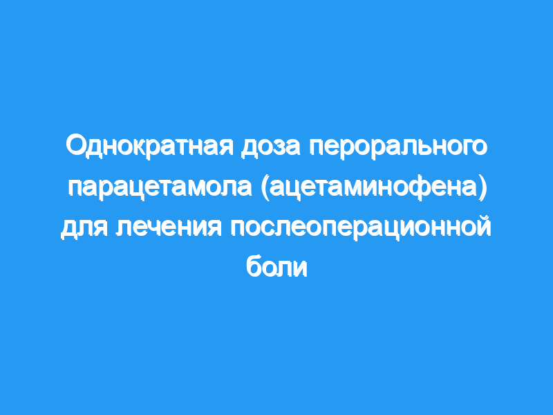 Оценить эффективность однократной дозы перорального парацетамола для лечения острой послеоперационной боли. Стратегия поиска: Мы провели поиск в библиотеке Кокрейна (выпуск 3, 2002), регистре исследований Кокрейновской группы по обезболиванию, паллиативной и поддерживающей терапии (ноябрь 2002), MEDLINE (с 1966 по май 1996), PubMed (с 1996 по август 2001), EMBASE (с 1980 по 1996), Oxford Pain Relief База данных (с 1950 по 1994 год) и списки ссылок на статьи для обновления существующей версии обзора. Критерии отбора: Рандомизированные, двойные слепые, плацебо-контролируемые клинические испытания парацетамола при острой послеоперационной боли у взрослых. Сбор и анализ данных: Два рецензента независимо оценивали качество испытаний и извлекали данные. Площадь под кривой «облегчение боли в зависимости от времени» использовалась для определения доли пациентов, получавших парацетамол или плацебо, испытывающих по меньшей мере 50%-ное облегчение боли в течение четырех-шести часов, используя проверенные уравнения. Количество, необходимое для лечения (NNT), было рассчитано с использованием 95% доверительных интервалов. Также была собрана информация о побочных эффектах. Сорок семь отчетов, в которые были включены 4186 пациентов (2561 пациент получал однократную пероральную дозу парацетамола и 1625 — плацебо), соответствовали критериям включения и были включены в анализ. NNT для облегчения боли по крайней мере на 50% в течение четырех-шести часов после однократного приема парацетамола были следующими: 325 мг NNT 3,8 (2,2 -13,3), 500 мг NNT 3,5 (2,7-4,8), 600/650 мг NNT 4,6 (3,9-5,5), 975/1000 мг NNT 3,8 (3,4 до 4,4) и 1500 мг NNT 3,7 (от 2,3 до 9,5). Анализ подгрупп не показал существенных различий между меньшими и большими испытаниями или испытаниями более низкого и более высокого качества. Редко сообщалось об отмене исследований, связанных с наркотиками. В исследованиях сообщалось о различной частоте побочных эффектов, которые, как правило, были умеренными и преходящими. Не было статистически значимых различий в частоте зарегистрированных побочных эффектов между парацетамолом 975/1000 мг и плацебо. Выводы рецензента: Разовые дозы парацетамола являются эффективными анальгетиками при острой послеоперационной боли и вызывают мало побочных эффектов.