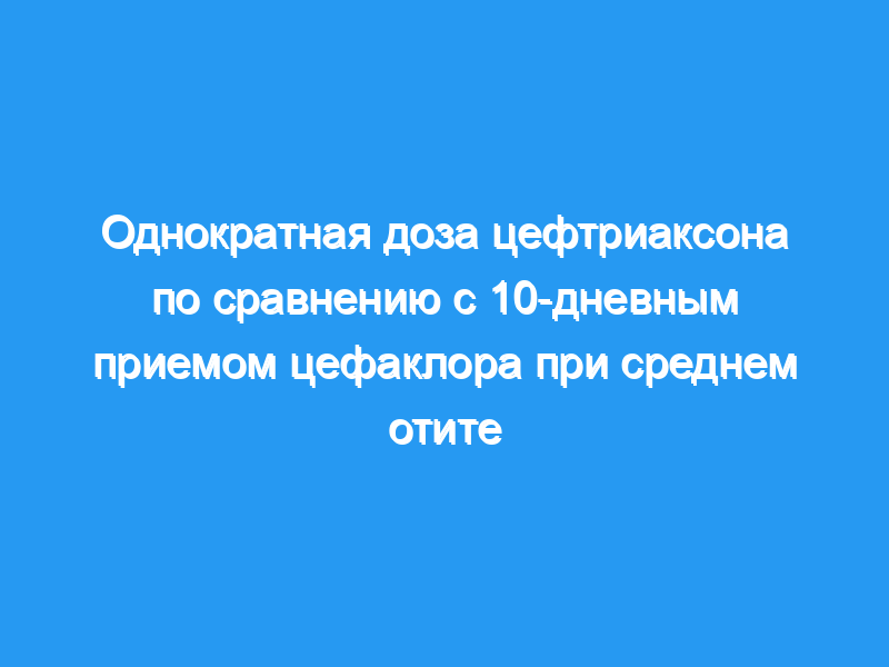 Мы пришли к выводу, что однократная внутримышечная доза цефтриаксона выгодно отличается с 10-дневным приемом внутрь цефаклора для лечения острого среднего отита.