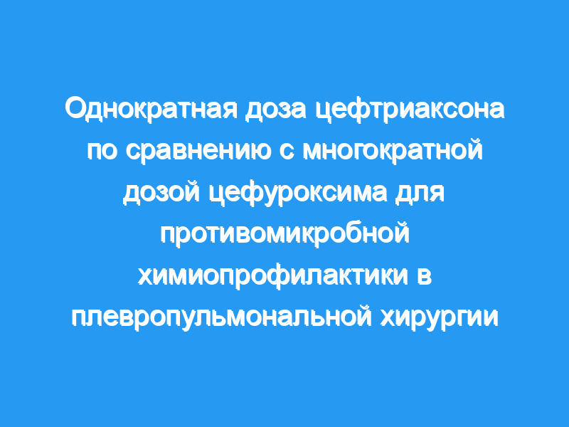 Эффективность и безопасность однократной дозы цефтриаксона и многократной дозы цефуроксима в качестве антибиотикопрофилактики при плевропульмональной хирургии были сравнены у 160 пациентов, перенесших операцию на грудной клетке.