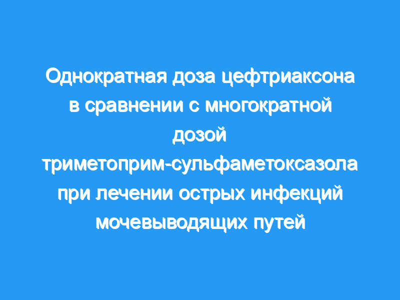 Пятьдесят четыре студентки колледжа с симптомами инфекций нижних мочевыводящих путей были рандомизированы, 25 из них получили 500 мг цефтриаксона в однократной внутримышечной дозе и 29 — 160 мг триметоприма-800 мг сульфаметоксазола перорально два раза в день в течение 7 дней.