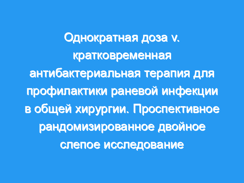 Для изучения эффективности режима однократного приема антибиотиков для предотвращения послеоперационной раневой инфекции было проведено проспективное рандомизированное двойное слепое исследование у пациентов, перенесших «чистую», «загрязненную» или «чистую» (сосудистую) хирургическую операцию.