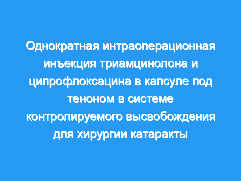 В этом рандомизированном контролируемом исследовании с двойной маскировкой в общей сложности 135 пациентов, перенесших операцию по удалению катаракты, были случайным образом распределены на две группы: 67 пациентов, получавших после операции преднизолон 1% и ципрофлоксацин 3% глазные капли четыре раза в день (неделя 1), три раза в день (неделя 2), два раза в день (неделя 3) и один раз в день (неделя 4) и 0,3% капли ципрофлоксацина четыре раза в день (недели 1 и 2), и 68 пациентов, получавших в конце операции подкожную инъекцию 25 мг триамцинолона и 2 мг ципрофлоксацина в биоразлагаемых микросферах.. Пациенты были обследованы на 1, 3, 7, 14 и 28-е сутки после операции. Основными показателями исхода были послеоперационные клетки передней камеры и воспаление, внутриглазное давление (ВГД), отсутствие противовоспалительной реакции и наличие инфекции.