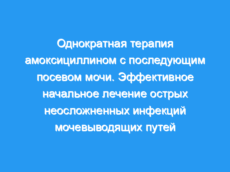 Мы пришли к выводу, что однократная доза амоксициллина в 3 г с последующим посевом мочи обеспечивает безопасное и эффективное лечение острых неосложненных инфекций мочевыводящих путей у небеременных женщин.