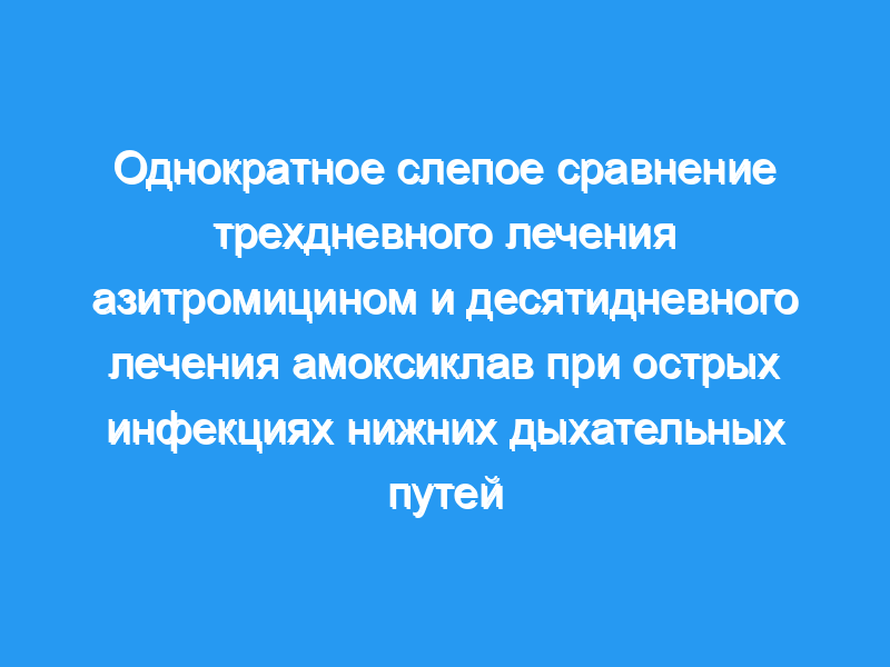 Был сделан вывод, что трехдневный режим азитромицина был таким же эффективным, клинически и микробиологически, как и десятидневный режим ко-амоксиклава при лечении острого инфекции нижних дыхательных путей.< / p>
