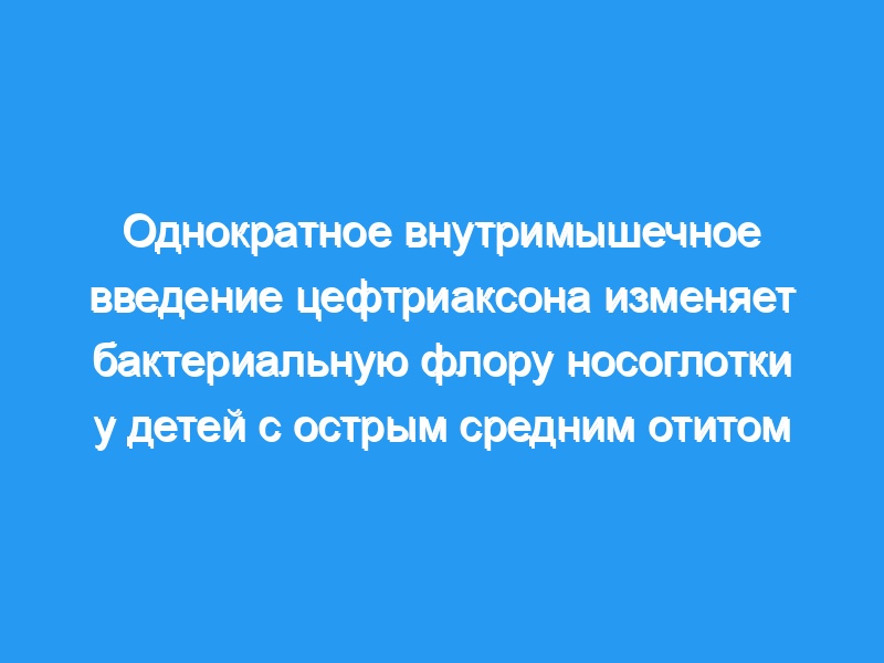 Мы определено влияние однократной внутримышечной дозы цефтриаксона (50 мг/кг) на бактериальную флору носоглотки у 167 детей (средний возраст 13 месяцев) с острым средним отитом.