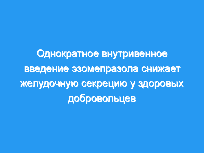 Через три часа после внутривенного введения эзомепразола средняя желудочная секреция снизилась на 77,6% (по сравнению с исходным уровнем) по сравнению с плацебо. Значения через 1 и 5 ч после введения препарата составили 73,5% и 74,5%. Через пять часов после приема эзомепразола рН желудка составлял <,2,5 в 3,9% случаев и 73,3% после приема плацебо (P <, 0,002). Эзомепразол хорошо переносился. Серьезных побочных эффектов не наблюдалось.