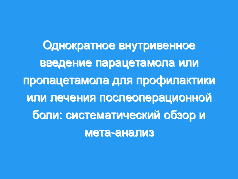 Мы провели систематический поиск (несколько баз данных, библиографии, на любом языке, чтобы возможно 2010) для однократных, рандомизированных, контролируемых клинических испытаний пропацетамола или внутривенно.