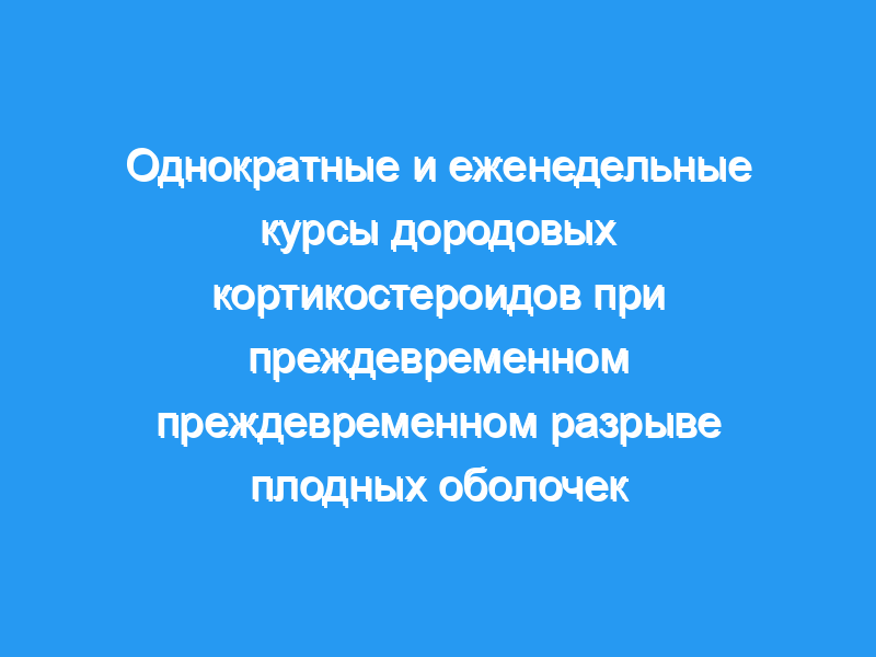 Это исследование было проведено для оценки эффективности еженедельных курсов дородовых кортикостероидов по сравнению с однократным курсом у женщин с преждевременным преждевременным разрывом плодных оболочек (PROM).
