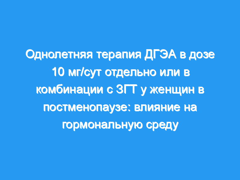 Целью данного исследования было оценить влияние на гормональную среду 1-летней терапии 10 мг/сут перорального дегидроэпиандростерона (ДГЭА) или 50 мкг трансдермального эстрадиола плюс 100 мг/сут перорального микронизированного прогестерона в группе из 20 здоровых женщин в постменопаузе (возраст=50-58 лет и годы после менопаузы (ysm)=1-6), а также эффекты, наблюдаемые при сочетании этих двух методов лечения в группе из 12 женщин в постменопаузе (возраст=54-61 и ysm=6-10), характеризующихся более низкими исходными уровнями DHEA и DHEAS (<,2,40 и <,0,55 мкг/мл соответственно). ДГЭА вызывал значительное повышение уровня андрогенов, тогда как ЗГТ — нет.