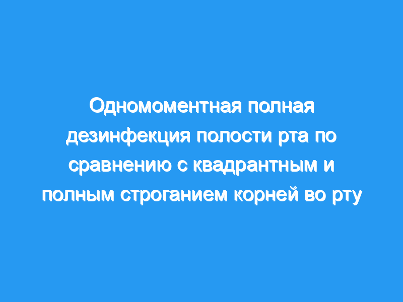 Целью этого исследования было проверить гипотезу о том, что одномоментная дезинфекция всего рта (FMD) обеспечивает большее клиническое и микробиологическое улучшение по сравнению с масштабированием всего рта и строганием корней (FM-SRP) в течение 24 часов и квадрантным масштабированием и строганием корней (Q-SRP) в пациенты с генерализованным хроническим периодонтитом. Материал и методы: Двадцать восемь пациентов были рандомизированы в три группы. 25 пациентов завершили исследование и послужили основой для анализа. Группа Q-SRP была масштабирована по квадрантам с интервалом в 1 неделю. Другие группы получали одномоментное масштабирование всего рта с (ящуром) и без (FM-SRP) хлоргексидина. Исходно, через 1, 2, 4 и 8 месяцев регистрировали клинические параметры и проводили микробиологический анализ.