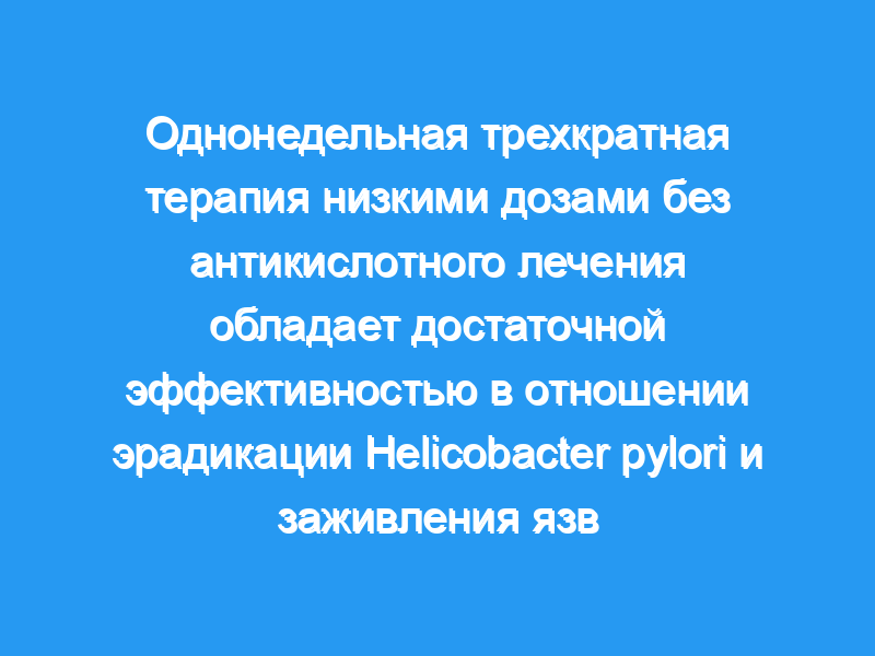 Продолжение антисекреторной лекарственной терапии сверх однонедельной тройной терапии низкими дозами, состоящей из омепразола, кларитромицина и тинидазола, на самом деле является чрезмерным с точки зрения эффективности эрадикации и заживления язвенной болезни.