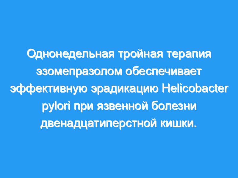 Тройная терапия на основе эзомепразола в течение 1 недели является высокоэффективной для искоренения инфекции H. pylori при язвенной болезни двенадцатиперстной кишки, обеспечивает сопоставимую эффективность с терапией на основе омепразола и хорошо переносится.