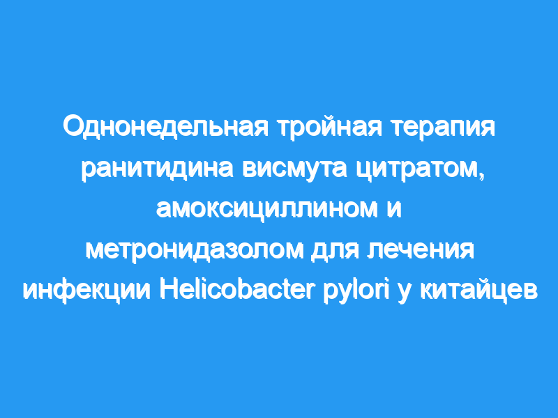Ранитидин висмута цитрат-амоксициллин-метронидазол был столь же эффективен, как тройная терапия омепразолом-амоксициллином-метронидазолом и может рассматриваться в качестве альтернативной схемы лечения, не основанной на кларитромицине, у китайской популяции.
