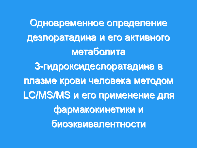 Был разработан и апробирован быстрый и простой жидкостно-хроматографический тандемный масс-спектрометрический метод (LC/MS/MS) для одновременного определения концентраций дезлоратадина и его активного метаболита 3-гидроксидеслоратадина в плазме крови человека.