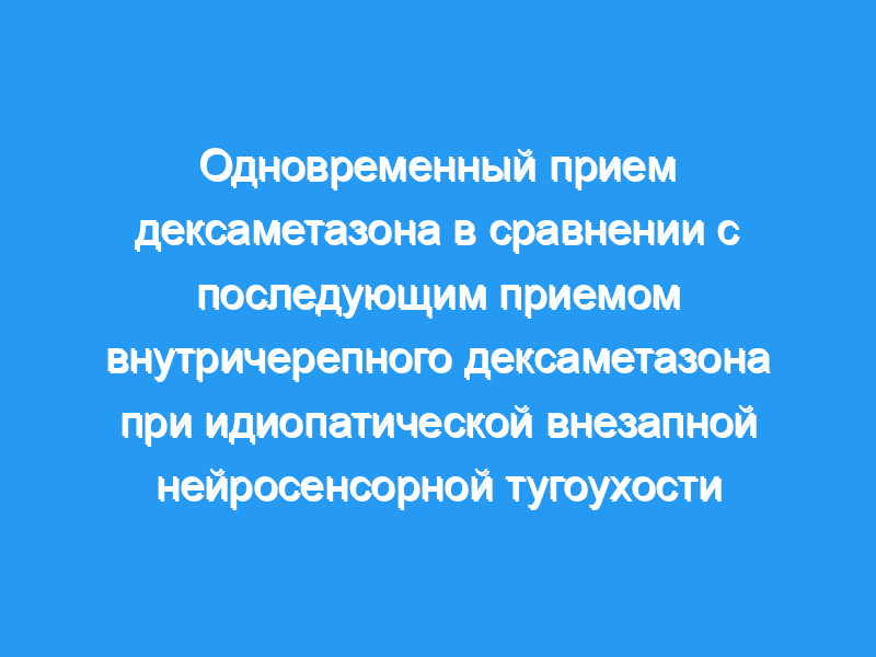Авторы сравнили эффективность одновременных и последующих внутричерепных инъекций дексаметазона для лечения идиопатической внезапной нейросенсорной тугоухости. Дизайн исследования: Проспективное рандомизированное контролируемое многоцентровое исследование.