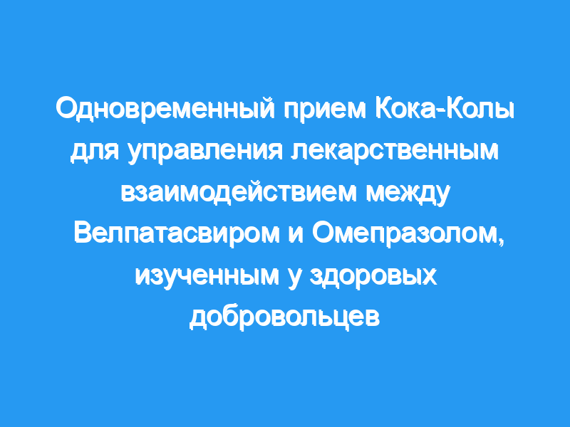 Мы стремились оценить влияние кислого напитка Coca-Cola на фармакокинетику велпатасвира (VEL) при приеме с омепразолом.