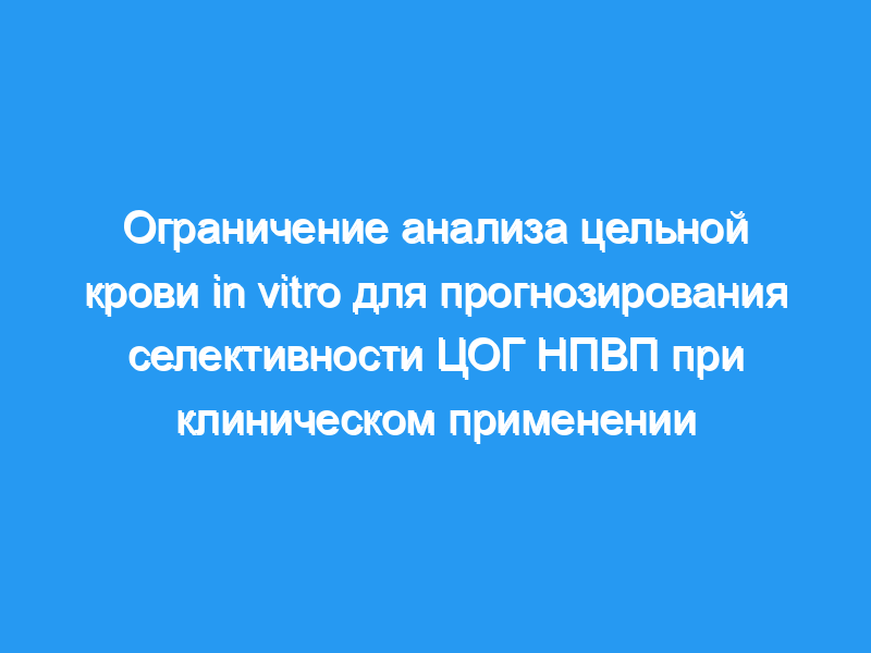 Оценка селективности ЦОГ-2 на основе исследований in vitro и фармакологического моделирования имеет ограниченное клиническое значение. Существует необходимость исследовать селективность ЦОГ при терапевтических концентрациях НПВП в плазме крови с использованием анализа цельной крови ex vivo.< / p>