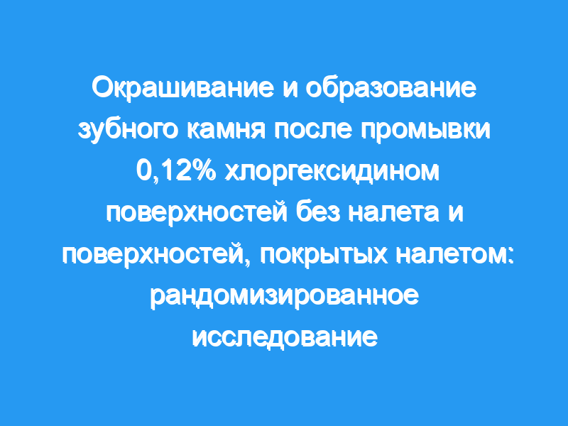 В этом исследовании проводилось однослепое рандомизированное экспериментальное исследование гингивита с раздельным ртом в течение 21 дня, включавшее 20 человек, которые отказались от всех механических методов борьбы с зубным налетом в течение 25 дней. После 4 дней накопления зубного налета у пациентов были очищены 2 рандомизированных квадранта, оставшиеся 2 квадранта с покрытыми зубным налетом поверхностями. На четвертый день индивидуумы начали с промывания 0,12% CHX, которое продолжалось в течение 21 дня. В течение экспериментального периода оценивали интенсивность и степень окрашивания, а также образование зубного камня.